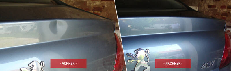 Bei der lackschadenfreien Ausbeultechnik werden die Dellen mit speziellen Werkzeug von der Innenseite des Bleches herausgedrückt und die ursprüngliche Form zurück geformt. Dabei wird die Lackschicht nicht beschädigt (verringert zusätzliche Lackier- und Spachtelarbeiten)